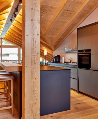 Zwei Garagenparkplätze garantieren eine sorgenfreie Anreise. Ein direkter Aufzugszugang von der Garage ins Apartment unterstreicht den außergewöhnlichen Charakter vom "Chalet Beatrice".