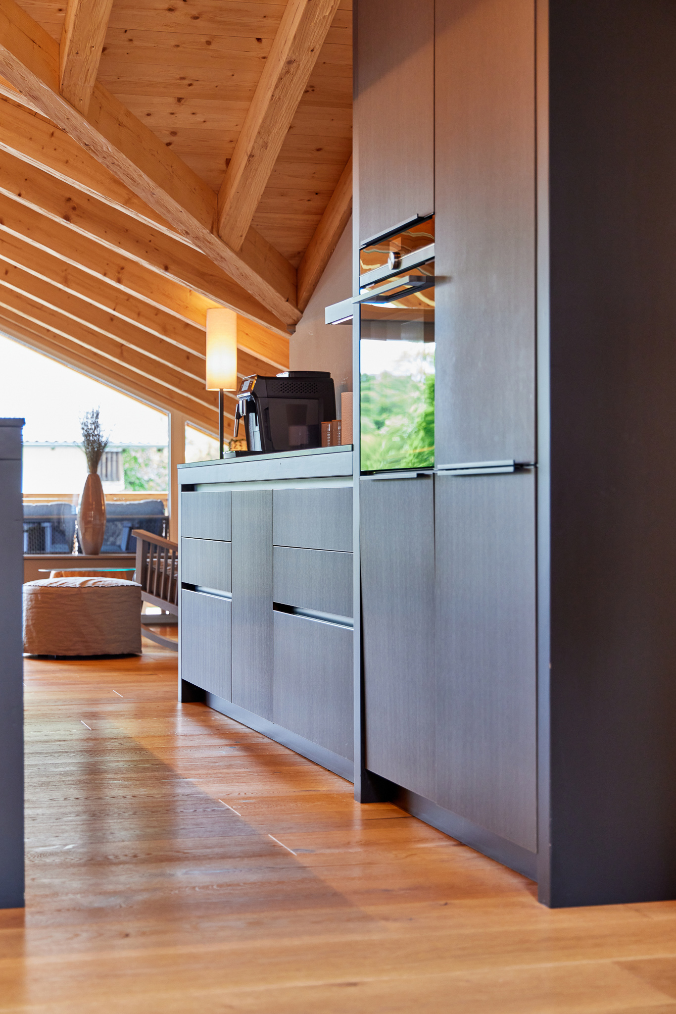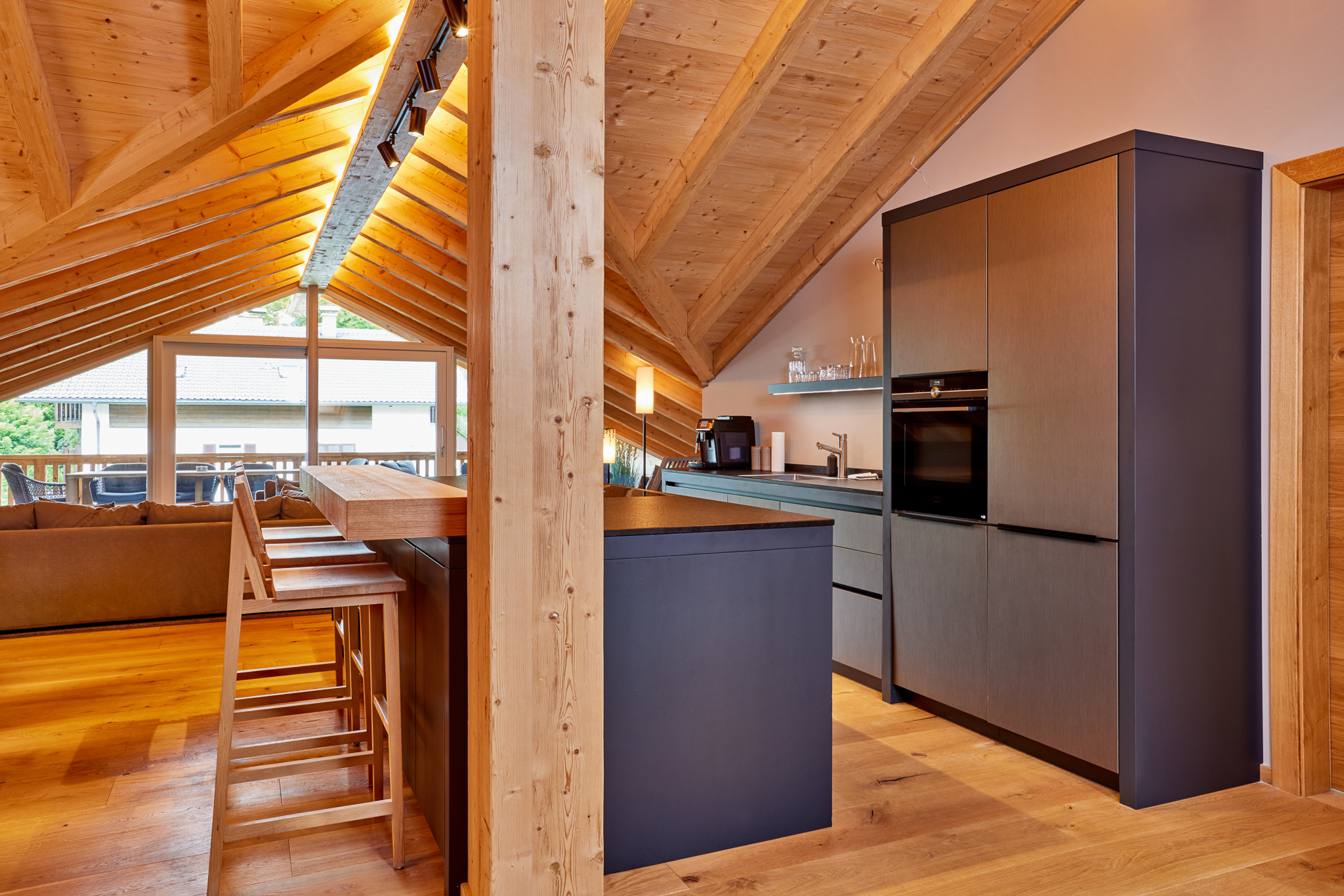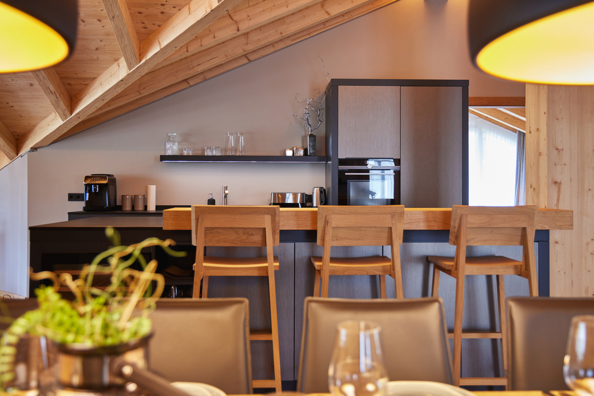 Der große Wohn- und Essbereich bildet das Herzstück des Apartments und ist ideal für gesellige Abende oder entspannte Stunden in exklusiver Atmosphäre. Die voll ausgestattete Küche lässt keine Wünsche offen.