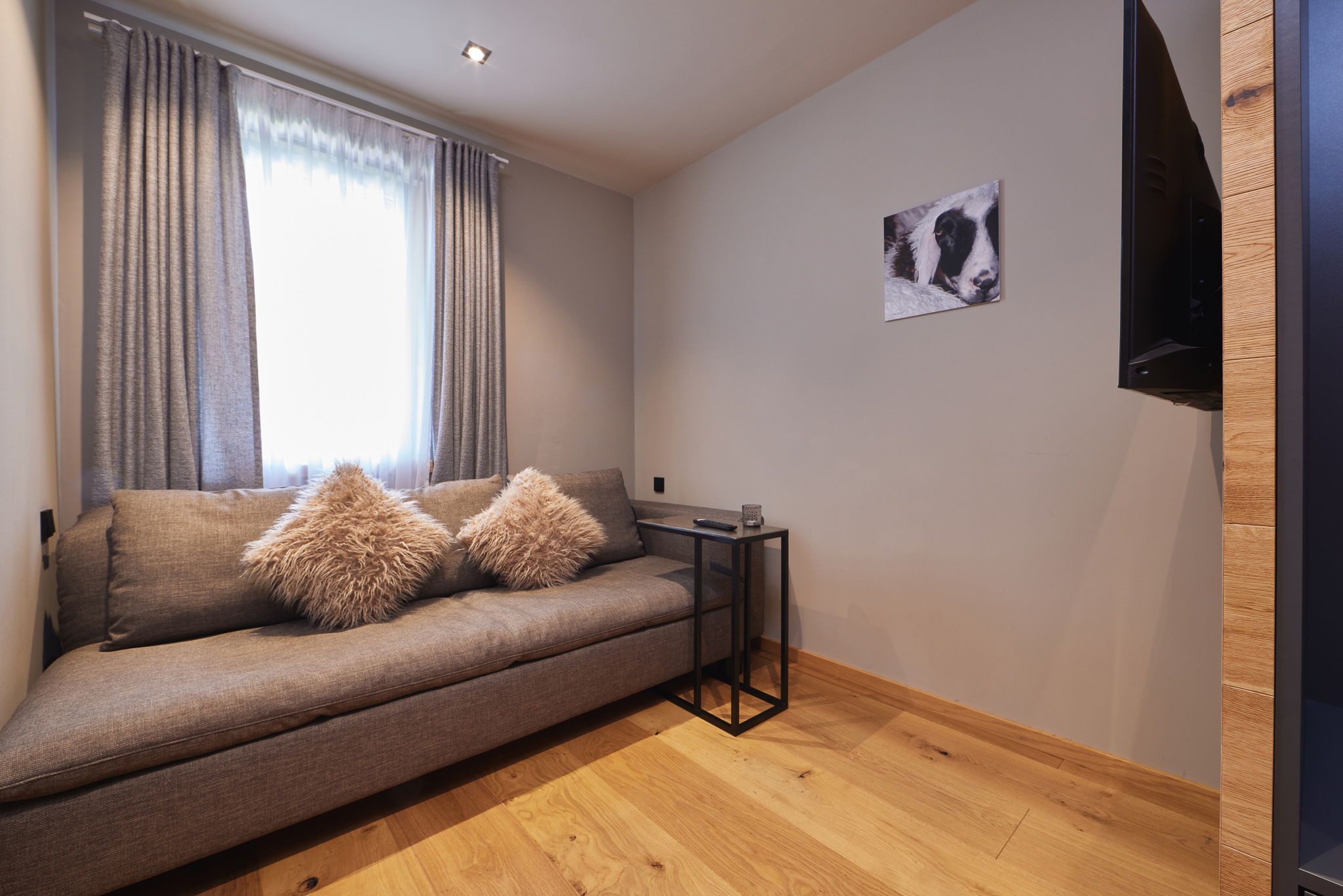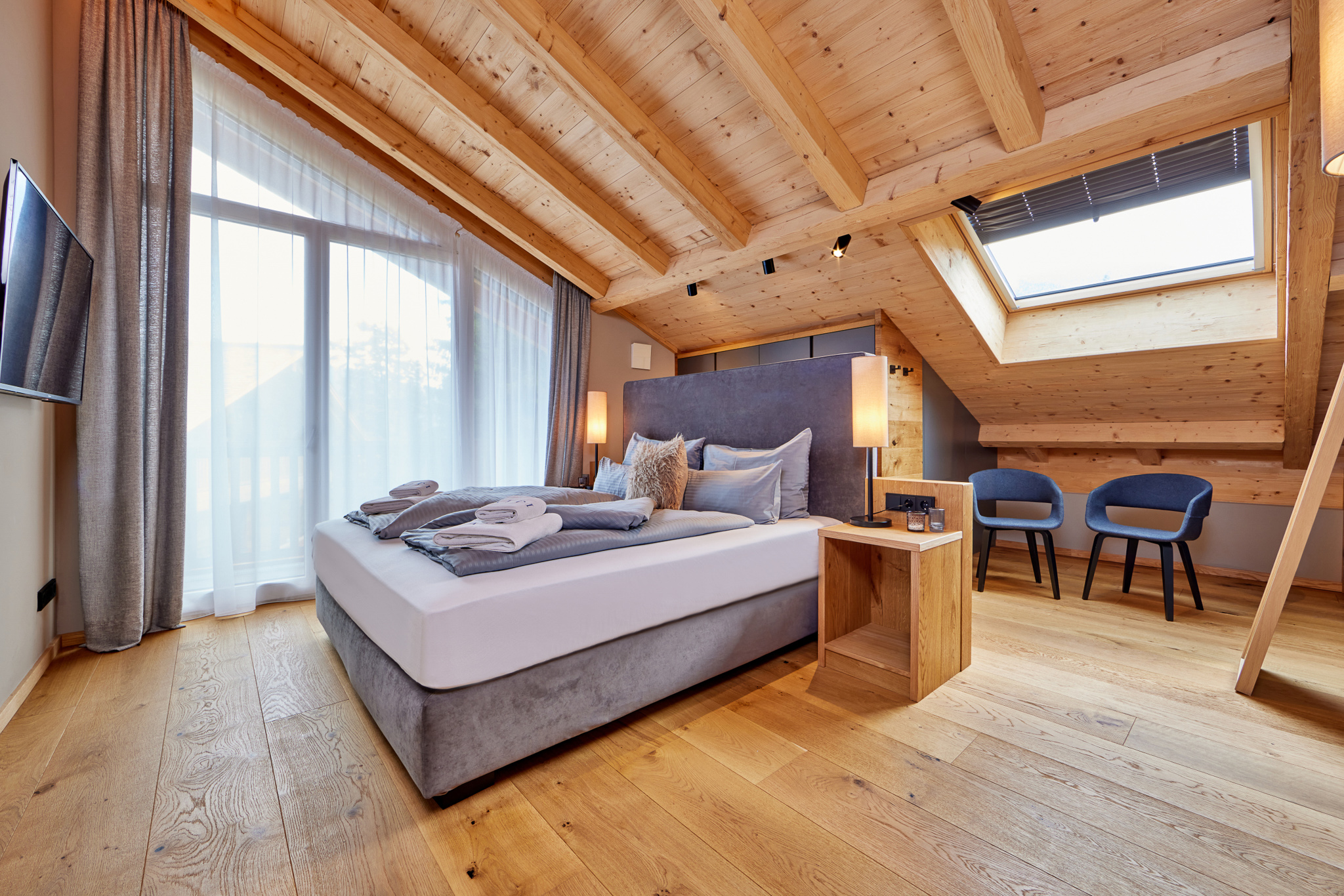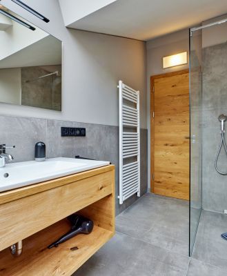Mit vier Schlafzimmern, einem zusätzlichen Schlafsofa und drei Bädern sowie einer separaten Gästetoilette bietet das alpine Chalet großzügigen Platz und Privatsphäre für jede Art von Aufenthalt. Eine private Sauna lädt zum Entspannen nach einem aktiven Tag in den Bergen ein.